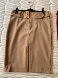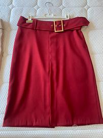 Vendo entrambi i completi ad unica persona ma possiamo anche accordarci privatamente. La giacca è stretta in vita e la gonna ha la cintura con fibbia dorata e spacco davanti. I colori dono bordeaux e beige, non so se si vede bene dalla foto