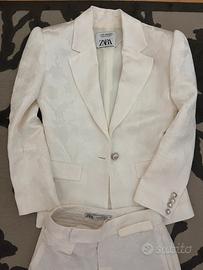 Vendo completo giacca + pantaloni di una collezione limited edition di Zara, usato solo una volta, è in perfette condizioni e non presenta segni di usura. L'ho acquistato a 200€ qualche anno fa, ha un tessuto di altissima qualità. lo sono alta 156cm e ho preso una taglia Xs di giacca e S di pantaloni.
