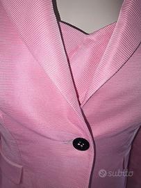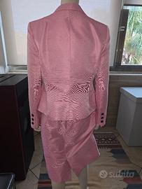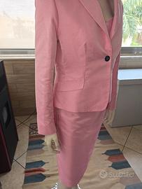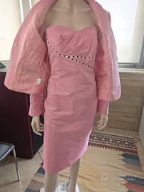 Vestito a tubino completo di giacca in tessuto ottomano colore rosa, adatto ad una cerimonia, il Vestito è décolleté.
