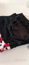 Abito:Presenta una gonna svasata con una stampa digrandi Papaveri rossi su uno sfondo bianco apois neri. La parte superiore (corpetto) è in morbido pizzo Nero con chiusura posteriore con bottoncini gioiello