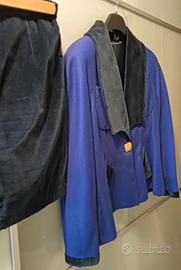 tailleur di sartoria, tessuto azzurro panno di lana e blu velluto di ottima qualità . taglia 44/46