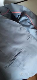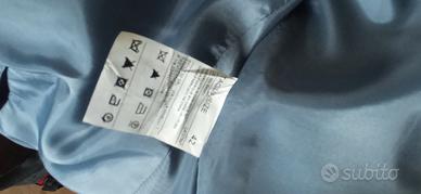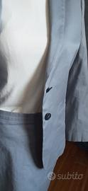 Completo donna gonna e giacca in cotone foderato, finiture sartoriali, bellissimo colore avio, usato poco in buone condizioni. Lunghezza gonna 50 cm da giro vita.