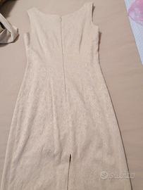 Tubino con lampo posteriore con giacca sciancrata a tre quarti con bottoni gioiello.