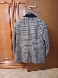 Tailleur in pura lana, sartoriale, taglia morbida (52/54) composto da giacca con sopracollo in velluto liscio nero, tasche a filetto, spalle cm.46, lunghezza manica cm.74, foderata e gonna in velluto liscio nero, foderata, con piccolo spacco dietro, fianchi cm.104 lunghezza cm.69