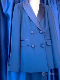 tailleur donna giacca doppiopetto con rever in raso e pantalone a zampa vendo per chiusura negozio