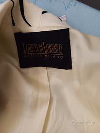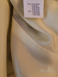 giacca in viscosa nera e giallo pastello con gonna longuette spacco posteriore.Ideale x cerimonia mezza stagione.Cappello in omaggio.Taglia 46/48 .Indossato una volta.