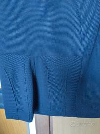 Elegantissimo tailleur da donna taglia 50. Blu con minuscoli pois bianchi. Gonna con motivo. Abito di qualità.