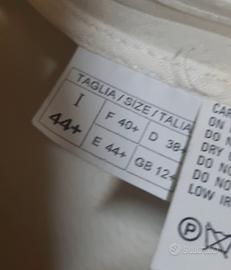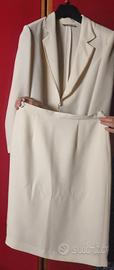 Tailleur con gonna colore panna, nella giacca il colletto ha dei bordini oro, taglia 44, usato poche volte.