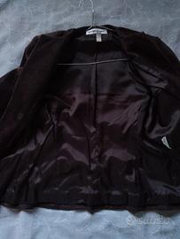 Sofisticatissimo tailleur di velluto marrone cioccolato made in Italy, taglia S, non presenta difetti. Portato pochissimo, condizioni pari al nuovo. Si chiude con 2 gancetti davanti.