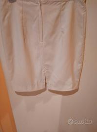 Gonna corta con chiusura zip sul retro con piccolo spacco centrale posteriore. Taglia 44/46