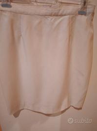 Tailleur con gonna e giacca, color crema, firmato Bolgheri. Fabbricato in Italia. 100% viscosa.