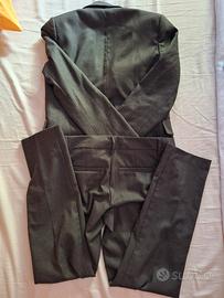 Completo giacca + pantalone grigio scuro. Usato pochissimo. Taglia:s Perfetto per lavoro, colloqui o eventi formali. Tessuto non stropicciato, facile da lavare.