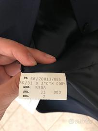 Vendo giacca nuova con etichetta. Lunga 75 cm, la manica è lunga 60 cm e le spalle larghe 43 cm. La composizione è 50% viscosa, 5% elastan, 45% poliestere