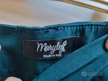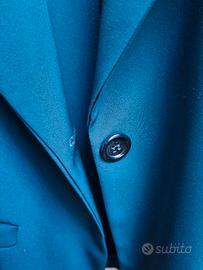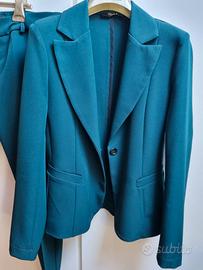 Tailleur donna Maryley verde bottiglia , Made in Italy, taglia M/ 44. Lunghezza pantaloni 92 cm, con spacchetto, larghezza vita 42 cm. Lunghezza maniche giacca 62 cm, larghezza spalle 38 cm. Usato un paio di volte