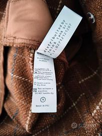 Presenta ampi revers a lancia e due grandi tasche applicate sul davanti, decorate con bordi sfrangiati che conferiscono un tocco artigianale e "worker" al design.All'interno una fodera satinata in tinta.
