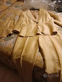 tailleur donna elegante con top colore oro indossato 1 volta