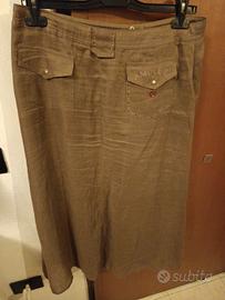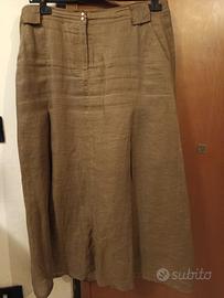 Classica tre bottoni e gonna midì svasata lunga ed elegante con pieghe frontali in tessuto lino.
