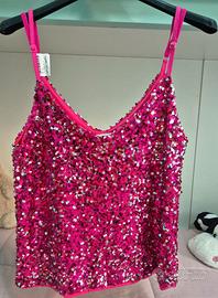 Vendo tailleur fucsia da cerimonia, completo di top con strass, pantalone a sigaretta e giacca con manica velata. Indossato una sola volta. Taglia 52.