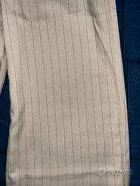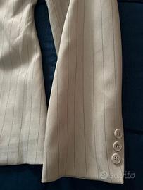 Tailleur gessato beige avvitato con spalline imbottite
