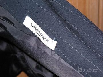 Tailleur gessato con gonna Marina Rinaldi originale, in pura lana vergine, colore bleu, giacca a tre bottoni, taglia 19, gonna dritta, nuovissimo, anche nella fodera interna, vendo euro 60