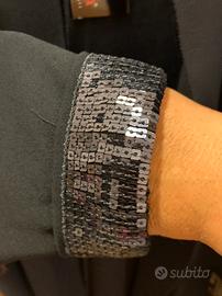 collo alla coreana con polsini e profilatura tasche con paillettes blu .
