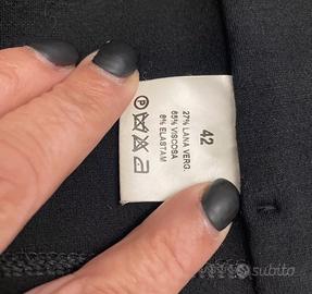 Giacca spalle 40 lunga 50 giro seno 90 ma anche qui un po’ elasticizzato e con bottoni che si possono spostare