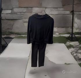 tailleur donna pantalone e giacca. tailleur con giacca abbottonatura versatile e pantalone cavallo basso si incrocia abbottonatura ottima vestibilita Vita 90 cm comunque si possono regolare xk hanno i bottoni ,fianchi da 90 a 120 xk tessuto elastico x pantalone