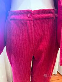 pantalone in velluto a coste color fucsia intenso, firmato White Wise. Un capo originale, di grande impatto e molto raffinato, perfetto per chi ama distinguersi con stile.