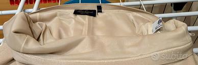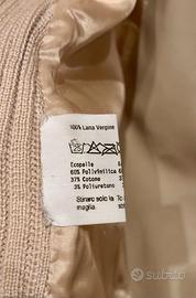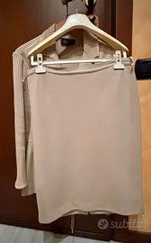 Tailleur composto da giacca con davanti in pelle, maniche e dietro in lana a coste; gonna in lana a maglia rasata a tubo. Luisa Spagnoli. Adatta a tutte le occasioni, beige. Indossato pochissimo