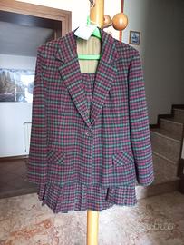 Tailleur in pura lana quadrettato verde/bordeaux/nero con gonna a pieghe, bottoni madreperla, sartoriale, vestibilità taglia 44-46. Solo ritiro di persona