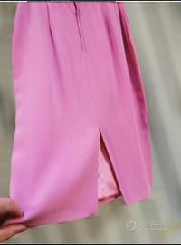 Tailleur Mimmina con giacca in pura seta 100% con spalline con bottoni in plexiglass motivo floreale giallo e rosa