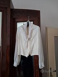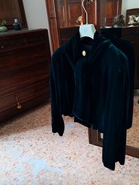 elegante tailleur in velluto verde bottiglia taglia 46 con abbinata camicetta bianca con paillettes, usato pochissimo.