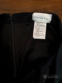 Completo nero donna Linea emme Marella Giacca con spalline leggermente imbottite, gonna al ginocchio con sottoveste Spalle giacca: 38 cm Manica giacca: 66 cm Lunghezza giacca: 59 cm Vita gonna: 38 cm Lunghezza gonna: 54 cm Tenere presente le dimensioni in foto, veste un po' più piccolo quindi L