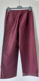 Tailleur in seta 100%, MAX MARA originale, per occasioni eleganti. Maniche giacca con risvolto a contrasto, come la cintura in vita di due colori, collo a scialle. Pantalone dritto con cerniera laterale. Ottime condizioni. Utilizzato pochissime volte.