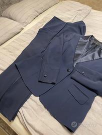 Vendo tailleur pantaloni blu finotura in raso lucido tg.50 elena miró