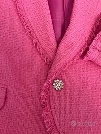 Tailleur rosa confetto acquistato di recente e indossato una sola volta per un evento, bottoni gioiello, foderato, molto bello, la gonna è appena sopra il ginocchio e la giacca è sancrata ai fianchi, ma