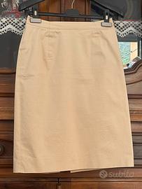 Talilleur in cotone beige con blazer a maniche corte e gonna a tubino.