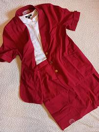 Tailleur rosso elegante L/XL con bottoni dorati