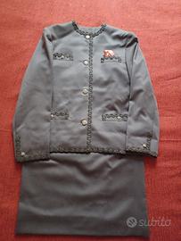 Misure: Giacca spalla cm 43, distanza ascelle cm 52 , lunghezza cm 64. Gonna lunghezza 70, vita cm 40,5, fianchi cm 51