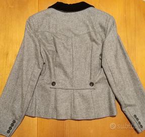 Tailleur Sport Max, taglia 46, pura lana vergine, colore grigio, giacca con colletto in velluto nero, girovita gonna cm 81, lunghezza gonna cm 56, mai usato.