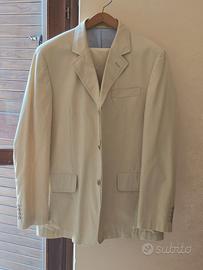 Tailleur (Giacca + Pantalone) da Uomo della Pedrini Trendy GB. Taglia 52, Colore Cachi/Beige. 100% Cotone Puro. Chiusura Giacca/Pantaloni a bottoni. (Presente alcune macchine gialle nella giacca "si tolgono facilmente in lavanderia").