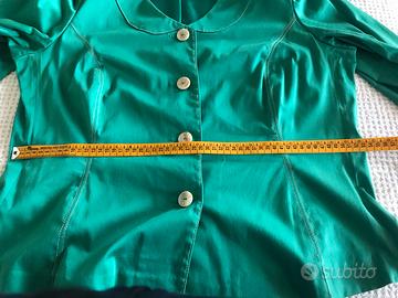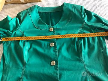 Tailleur di un bellissimo punto di verde smeraldo, in rasatello di cotone leggermente elasticizzato, indossabile da una taglia 52/54, sartoriale, manica 3/4.