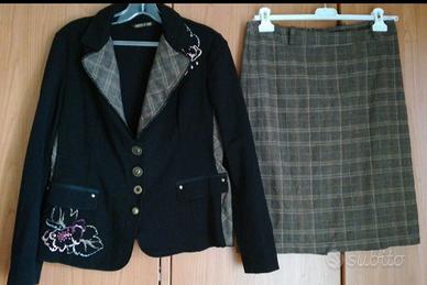DONATELLA DE PAOLI in misto lana. Giacca elasticizzata e sfoderato. Gonna dritta, foderata, con spacco e zip a scomparsa dietro. Circonferenza vita: 86 cm.