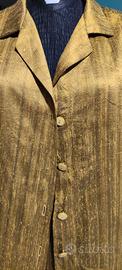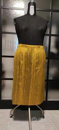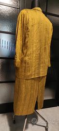 Tailleur, vintage sartoriale in shantung seta grezza, colore oro scuro, composto da giacca e gonna dritta (circ. vita cm. 90, lun. cm. 71) Fodera interna nera, bottoni originali anni '60/'70. Taglia: 50/52 Tenuto con cura.