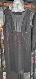 Abito usato un paio di volte composto da giacca più vestito sbracciato nero con decorazioni Simil pelle. Lungo fino al ginocchio. Si effettua spedizione a carico Dell aquirente