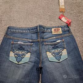 Jeans Donna Take Two bootcut Straight Washed Out jeans a Vita Bassa 2000s. Tessuto non elasticizzato. Vita bassa. Effetto originale di invecchiato e consumato. Veste xl. Consiglio di controllare le misure fornite. Larghezza vita: cm 45 Larghezza fianchi: cm 51 Altezza cavallo: cm 20 Larghezza coscia: cm 27 Larghezza caviglia: cm 24 Lunghezza totale: cm 116