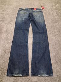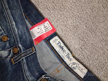 Jeans Donna.Take Two bootcut Straight jeans very low waist Y2K Vita molto bassa Non elasticizzato. Gamba dritta. Veste xl Larghezza vita: cm 44.5 Altezza cavallo: cm 18 Larghezza coscia: cm 28 Larghezza fondo: cm 22 Lunghezza totale: cm 113