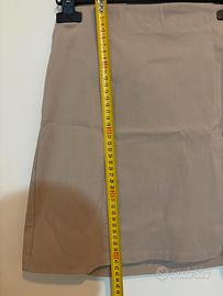 Gonna da donna colore beige, modello semplice ed elegante. Vita alta con taglio dritto e piccolo spacco laterale che dona comfort e un tocco femminile. Tessuto leggero e leggermente elasticizzato, ideale per outfit casual o più raffinati. Taglia: M/IT 42 /EU 38 Condizioni: buone, con normali segni di utilizzo versatili. Perfetta da abbinare a camicie, top o blazer per look