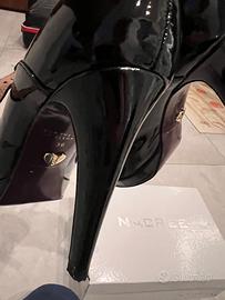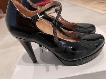 Tamaris décolleté nero in vera pelle lucidata tacco 10cm e plateau di 2 cm circa. Taglia 36