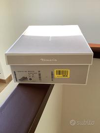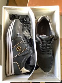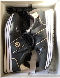 Vendo con la loro scatola originale, sono state usate solo quattro volte. Internamente come nuove così come la tomaia e la suola. Il plateau bianco presenta invece degli aloni che evidenziano che non sono nuove. Sono ancora oggi in vendita anche online al prezzo di euro 69,95.